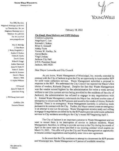 Sure, WM will file suit, Chase will make a lot of money (good for him; he’s a good lawyer and guy), but they will lose. Mayor Lumumba is making the right call legally.