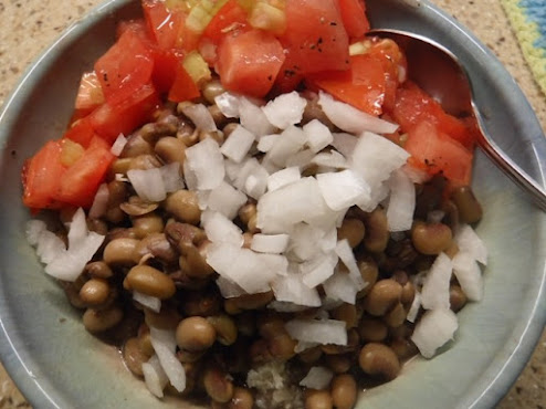 Cook the purple hull peas, in a boiler, with enough water to cover the (frozen) peas (or fresh if you are lucky enough to have some). The ones here were from our freezer. Add a Tablespoon vegetable oil, or bacon grease, ½ teaspoon sugar and 1 teaspoon salt. Toss a few pods of okra on top of the peas, bring to a boil and cook on low boil for 20-30 minutes. Boiled okra is a personal preference, and I love it. We probably never cook boiled okra when company is coming because some folks are grossed out by it. I see that as your problem and not mine, but out of hospitality concern, I will not force anyone to eat anything they don't like.