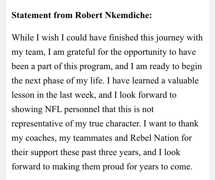 Nothing to see here folks. After what his brother did to himself Robert's "incident" in Atlanta was no surprise. Can you find anyone who thought the Nkemdichis were actually there to go to classes? This was destined to happen. What's more important out of this class are the Rebels who will be returning for their senior seasons...