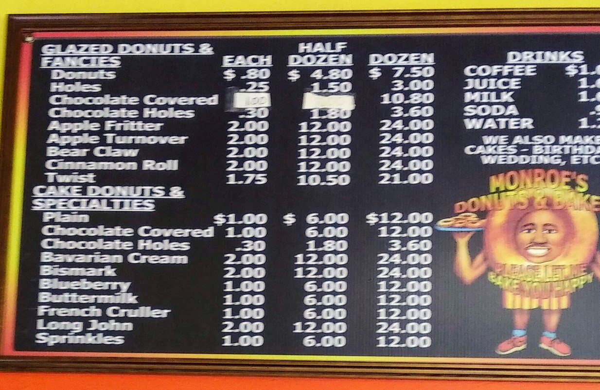 I had a pleasant conversation with him while he got my order ready. He is genuinely a nice man and a hard worker and it's worth the trip to McDowell Road for the donuts alone! I would suggest to anyone who wants to support a good corporate citizen and a Jackson original to go by Monroe's and give him some business.